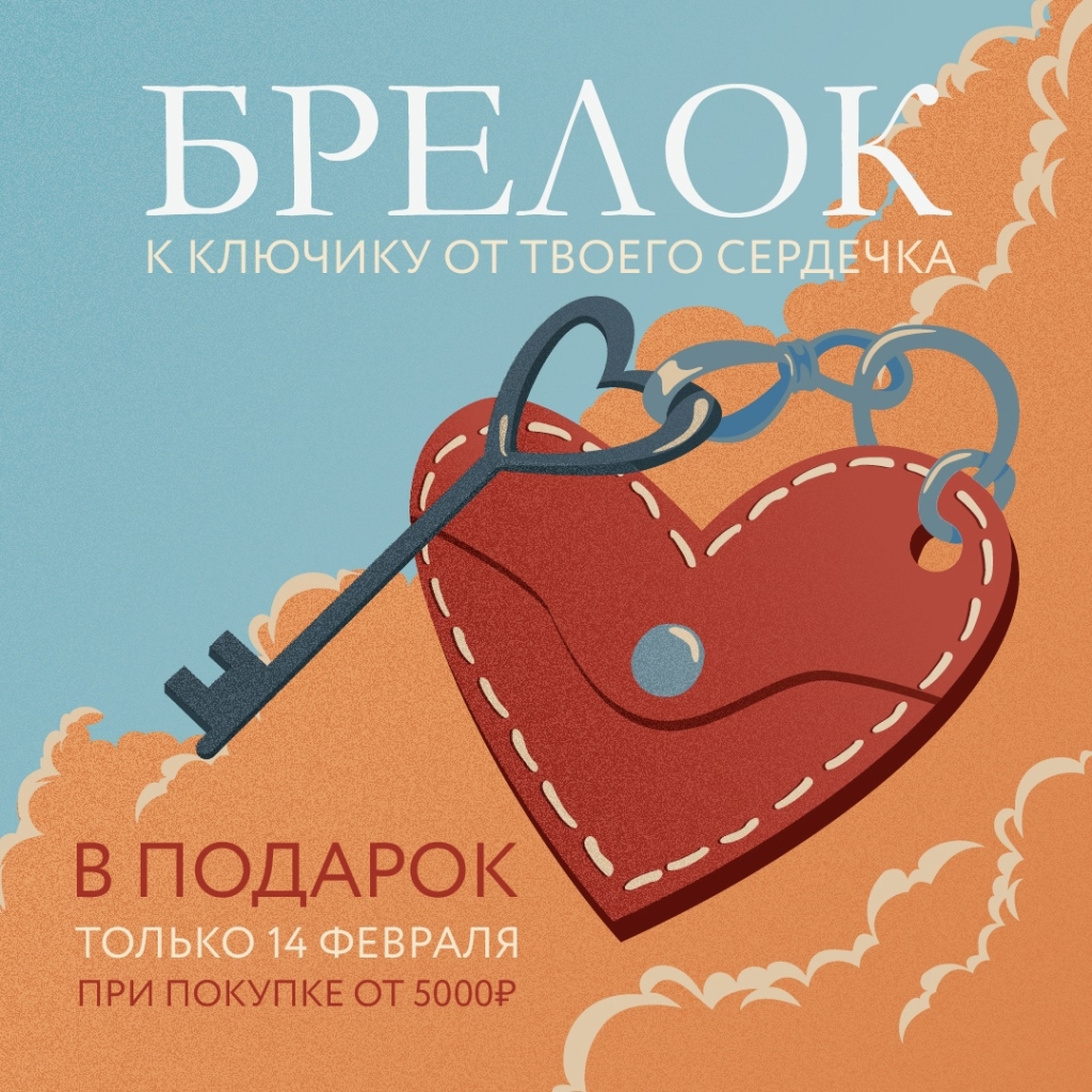 Только 14.02.2025 при покупке от 5000 рублей брелок-сердечко из лимитированной серии будет идти в заказе со скидкой 100%!