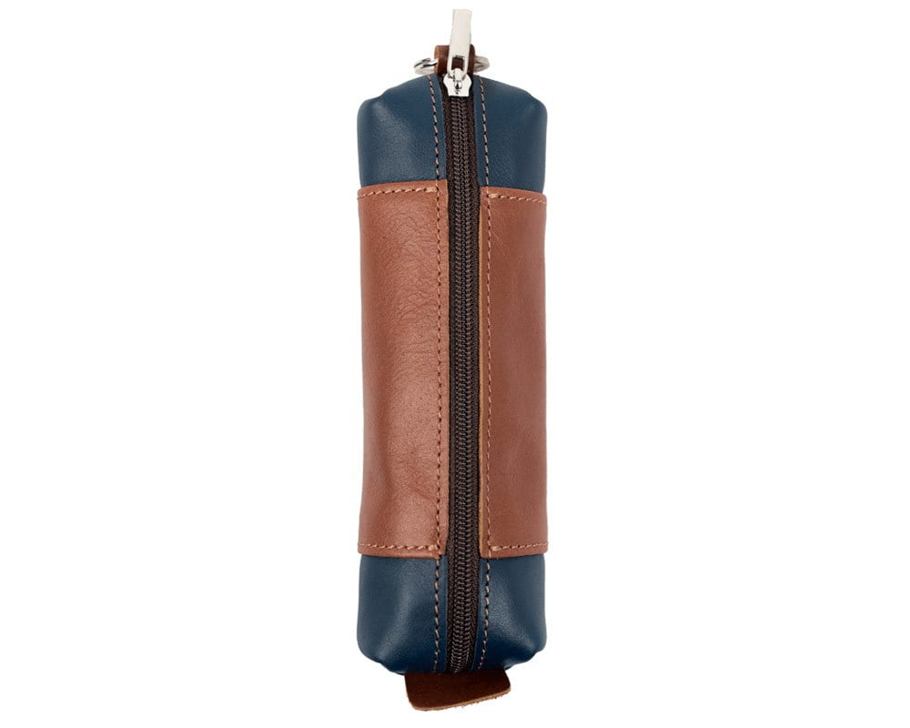 При покупке предупредили, что мне попалась из тестовой партии с немного другим оттенком кожи — вместо просто коричневого — оранжево-коричневый. На мой взгляд, этот цвет даже более удачный, на контрасте с синим очень хорошо смотрится (сравнивала со второй купленной ключницей с цветами наоборот, та в исходном коричневом цвете)