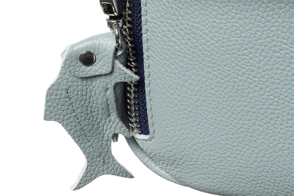 Если образец фигурный – натуральная. Но важно отметить, что сейчас к искусственной коже часто вообще не добавляют образец материала, а форма образца натуральной кожи может быть любой, на вкус производителя. Например, образец на кожаных изделиях бренда Верфь – рыбка.