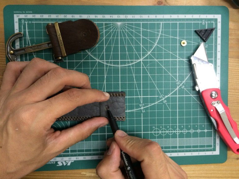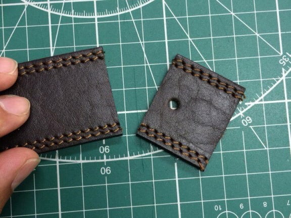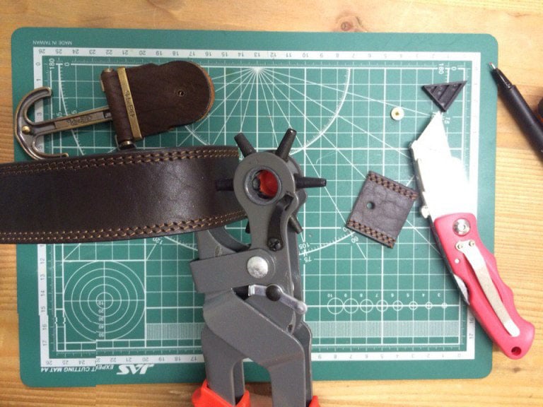 Отверстие делаем с лицевой стороны ремня.
