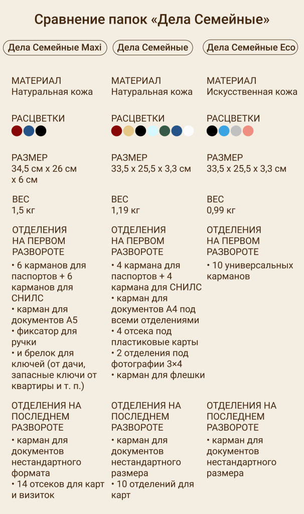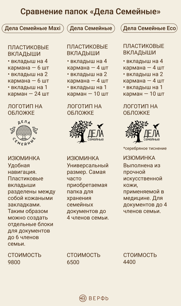 А для того, чтобы вам было легче ориентироваться в папках, мы подготовили развернутую сравнительную инфографику. Сопоставляйте и выбирайте, какие Дела Семейные подходят вам больше всего.